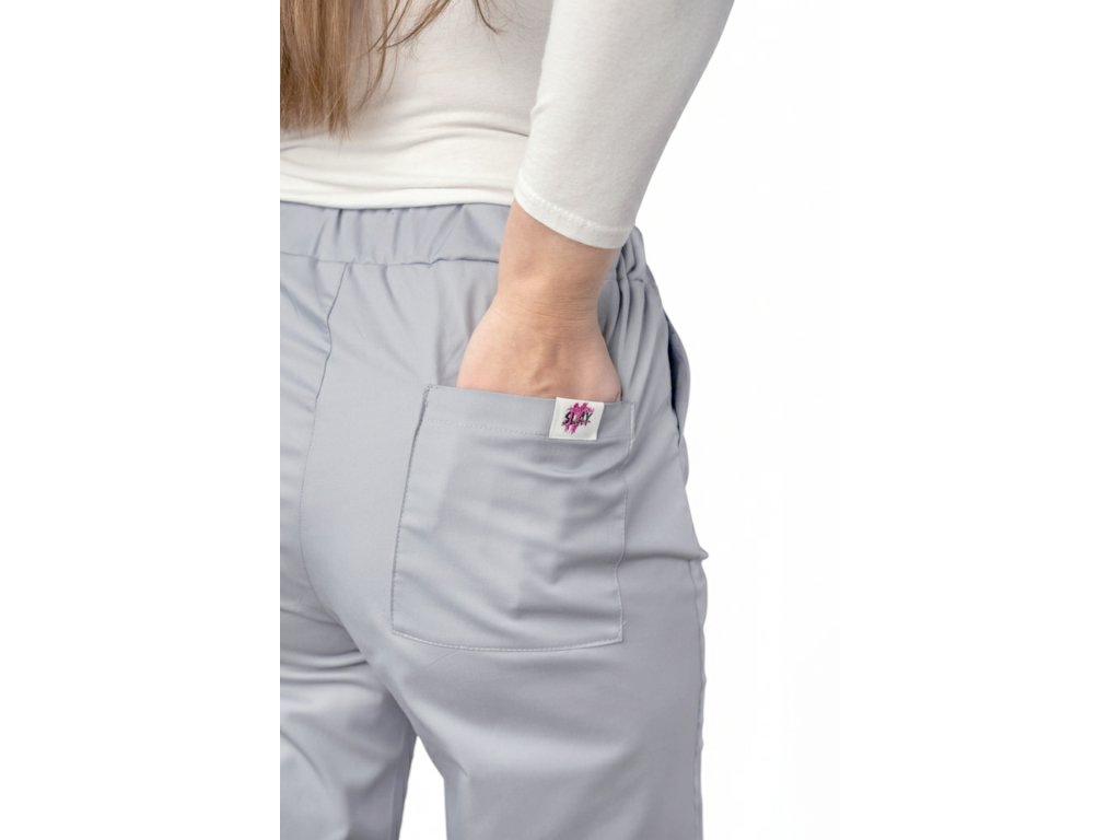 Kolekce Gr(a)y's Anatomy je unikátní svou nadčasovou barvou, univerzálností a možností kombinace s halenkou ze stejné řady. Spolu vytváří dokonalý outfit, který spojuje funkčnost, styl a profesionalitu. Tyto šedé dámské lékařské kalhoty jsou ideální volbou pro všechny, kdo chtějí vypadat elegantně, cítit se pohodlně a podpořit českou výrobu.