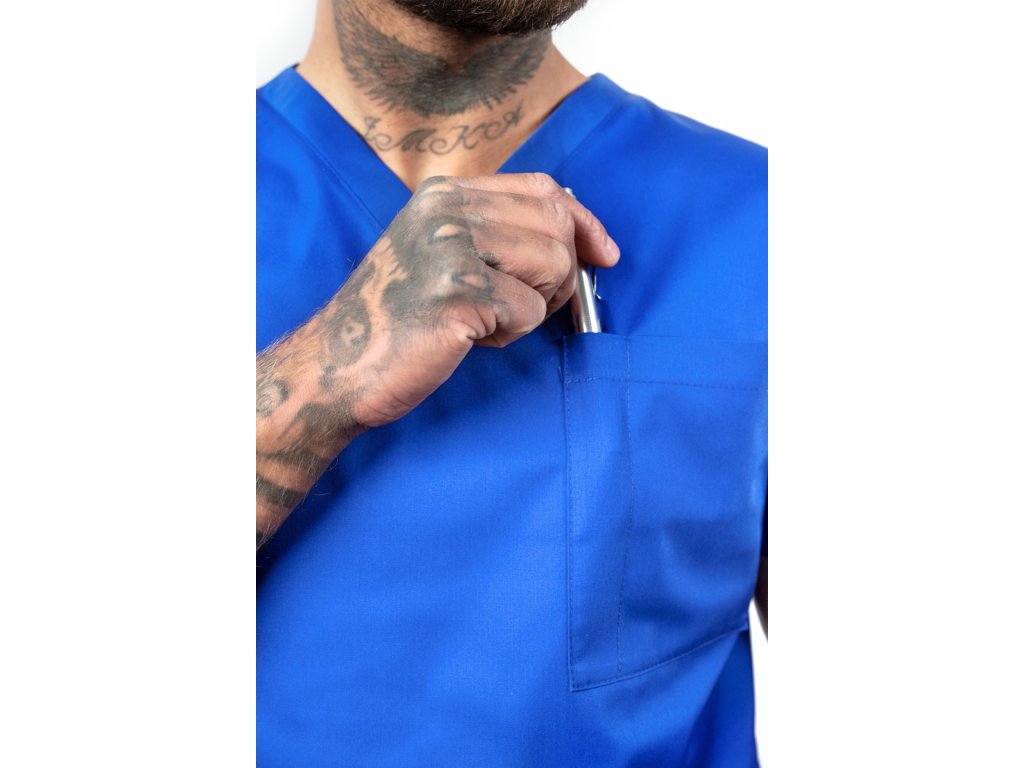 Pánská halena Rizz byla navržena pro všechny zdravotníky, kteří chtějí spojit komfort, kvalitu a reprezentativní vzhled. Její královsky modrá barva působí energicky, sebevědomě a přitom profesionálně – přesně tak, jak se má cítit každý muž, který stojí v první linii péče o pacienty. Halena je vyrobena ze 100% přírodní bavlny s mezinárodním certifikátem OEKO-TEX® STANDARD 100, což znamená, že neobsahuje žádné škodlivé látky a je maximálně šetrná k pokožce.